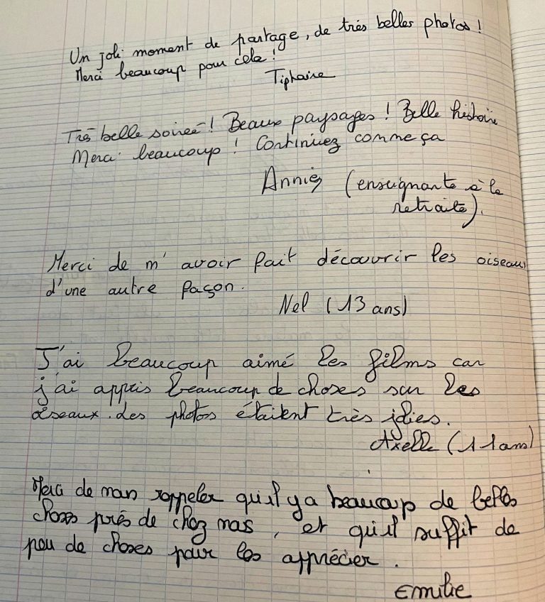 Extraits du livre d'or des premières projections. DPNMF remercie les premières personnes à avoir eux un très bon jugement de notre cinérama. Des encouragements pour un avenir durable, pour vous public. Ce qui nous pousse a avoir ce proverbe !